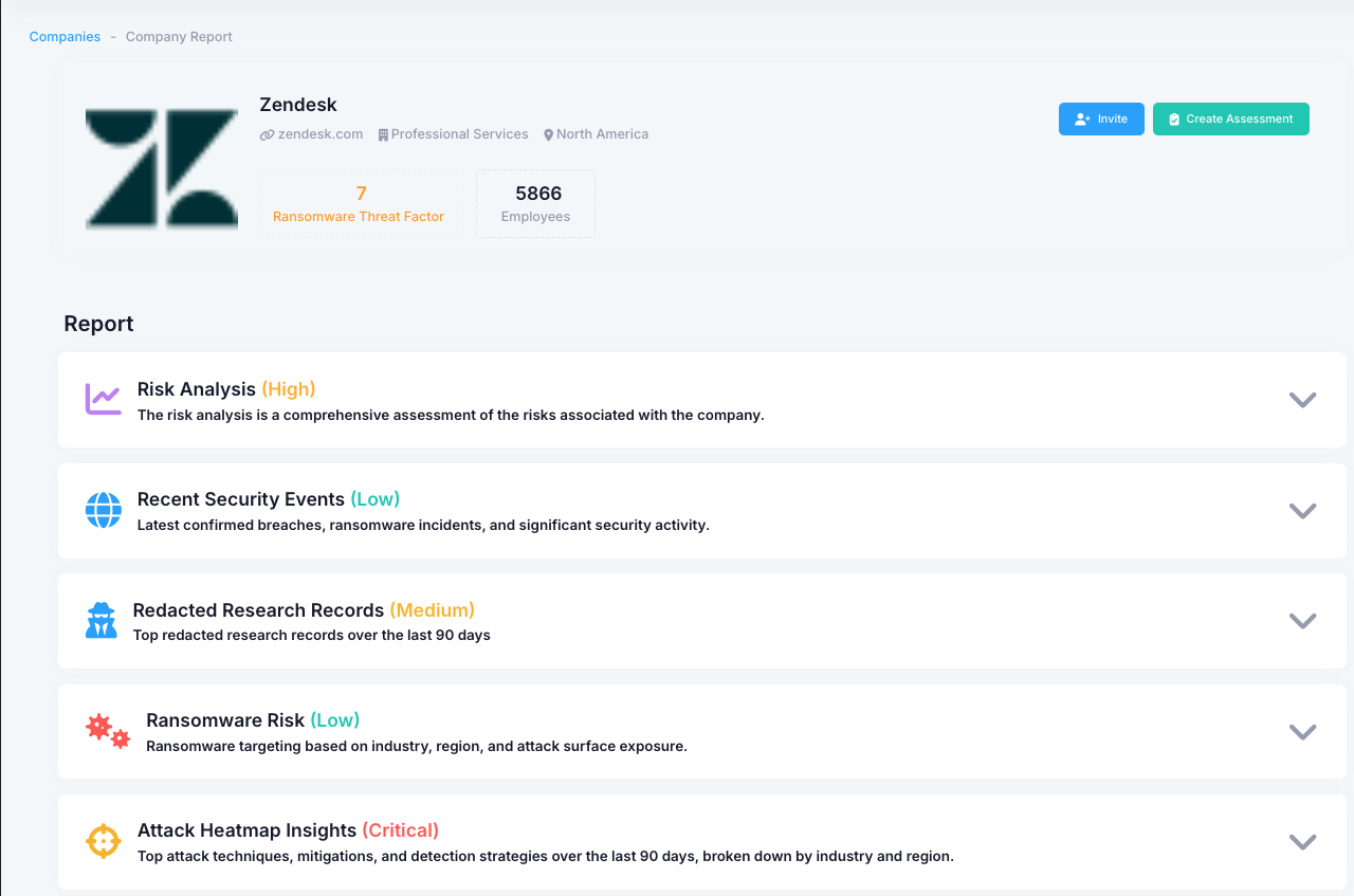 Company Profiles provide a real-time, evidence-based view of vendor risk, combining: